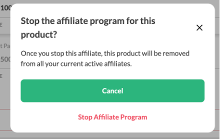 - Setelah itu akan muncul pop up seperti gambar di bawah, lanjutkan dengan klik “Stop Affiliate Program”