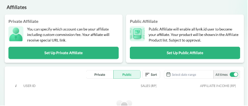- Setelah itu silakan anda klik Setup Public Affiliate